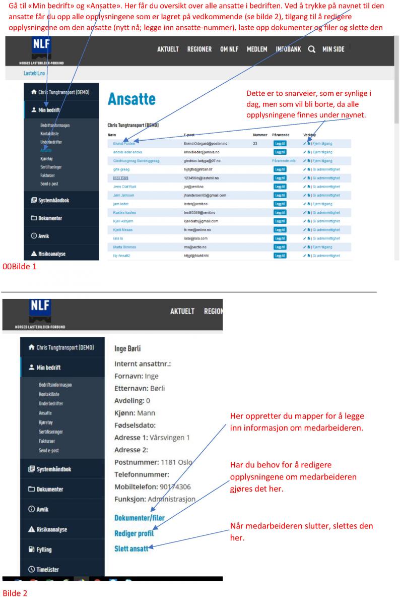 I forbindelse med opprettelsen av mappene har listen over ansatte blitt litt justert. Se i vedlegg 1 hvordan du legger inn informasjon i mappene.