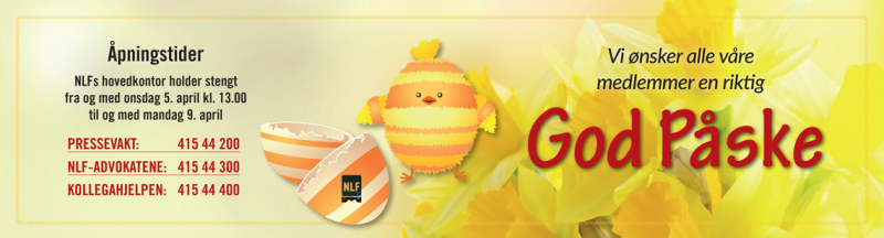 Påsken er i gang og hovedkontoret i Oslo vil holde stengt fra og med onsdag 5. april fra klokken 13:00 og frem til og med mandag 10. april.