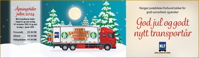 Dette blir årets siste nyhetsbrev og Norges Lastebileier-Forbund takker for godt samarbeid i året som har gått, og ønsker alle en god jul og et godt nytt transportår.