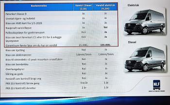 Garantisum for første løyve, varebil, er kr 21 000,- for diesel og kr 106 000,- for elektrisk da elektriske varebiler registreres som lastebiler.